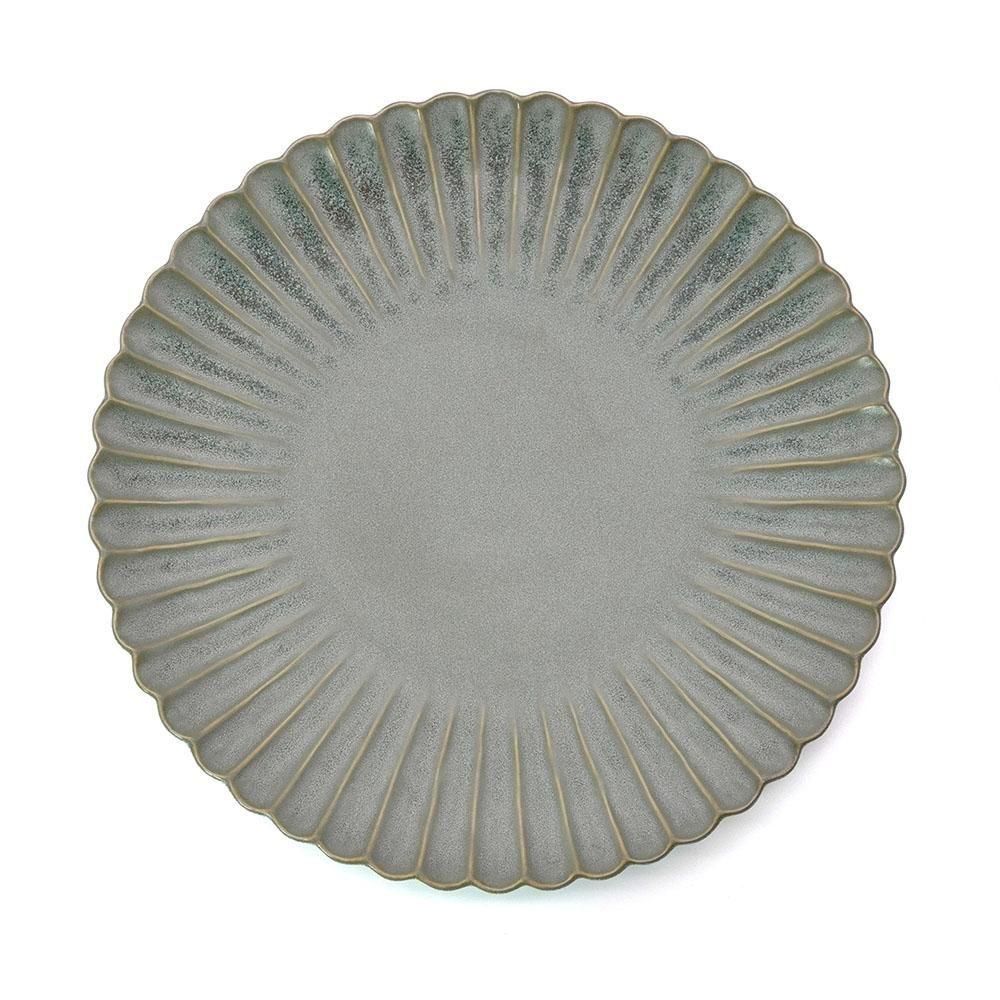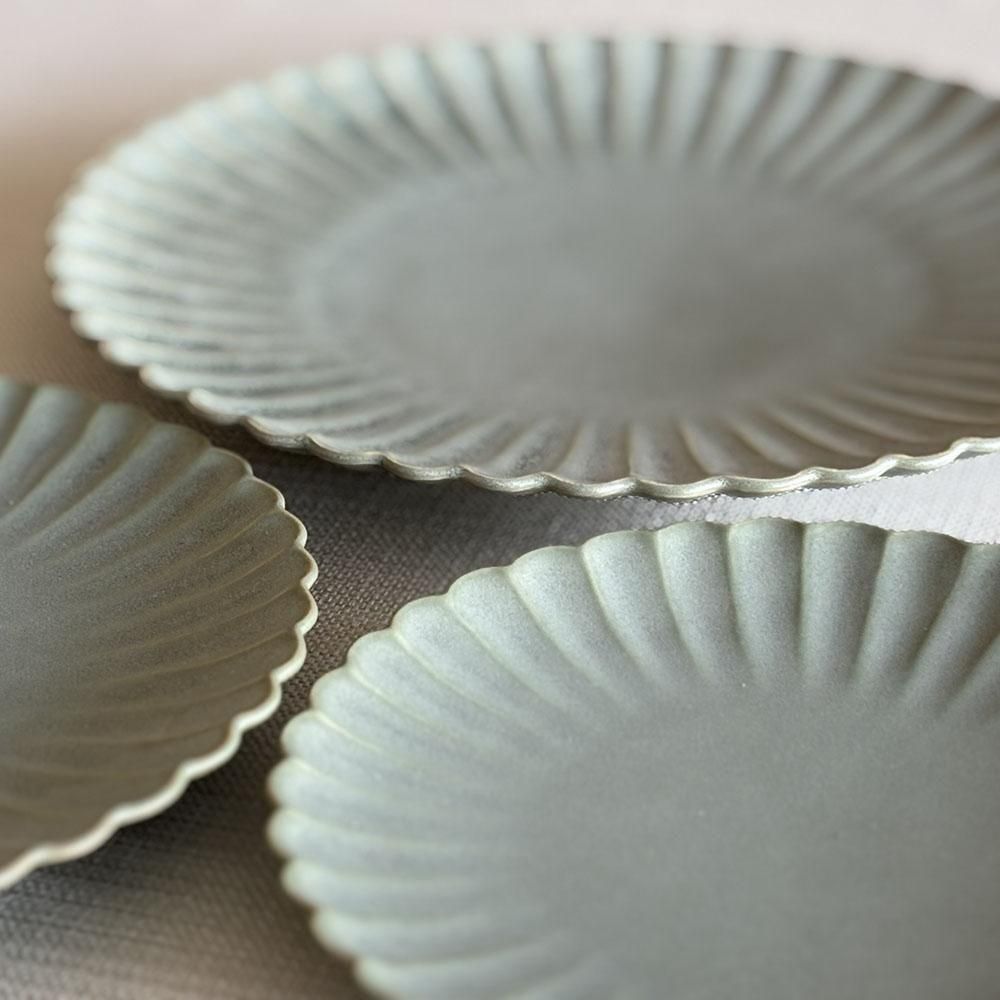 Smoky green の菊割皿は、ニュアンスのあるくすみカラーが魅力。