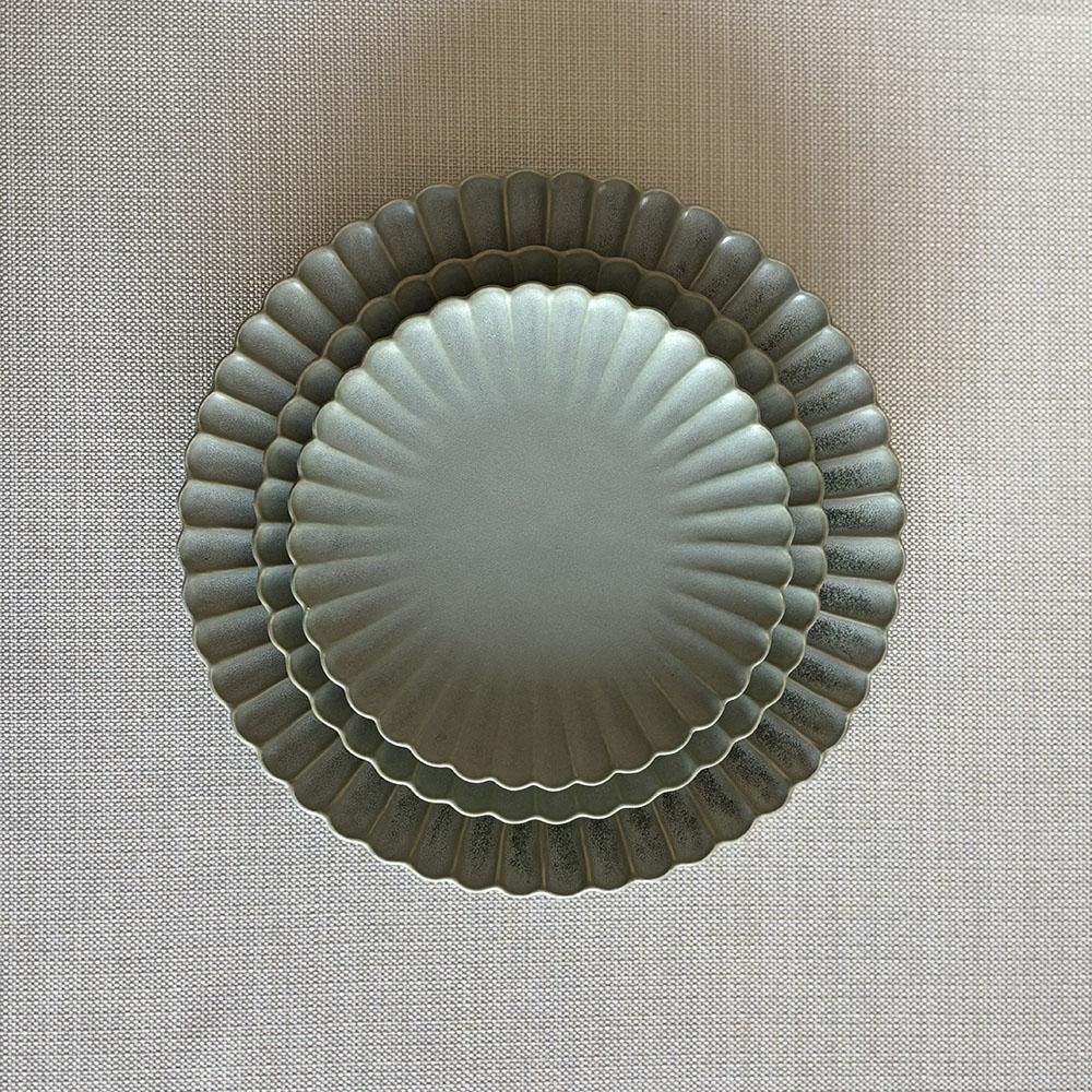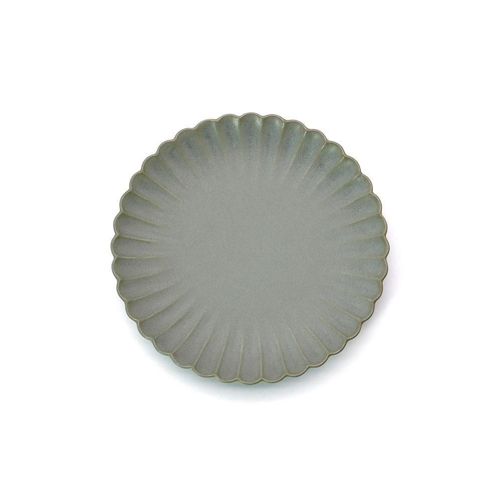 Smoky green の菊割皿は、ニュアンスのあるくすみカラーが魅力。