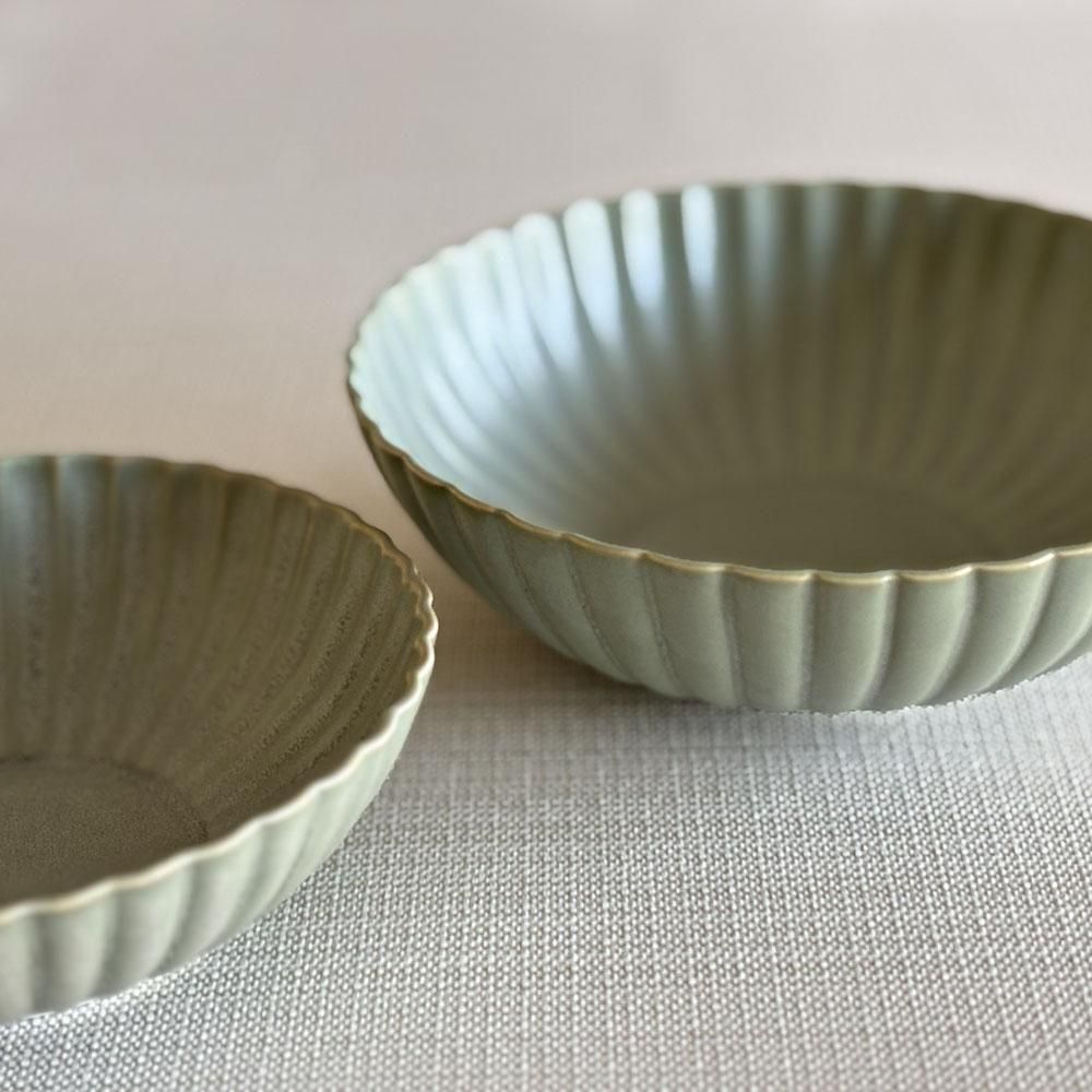 Smoky green の菊割鉢は、ニュアンスのあるくすみカラーが魅力。