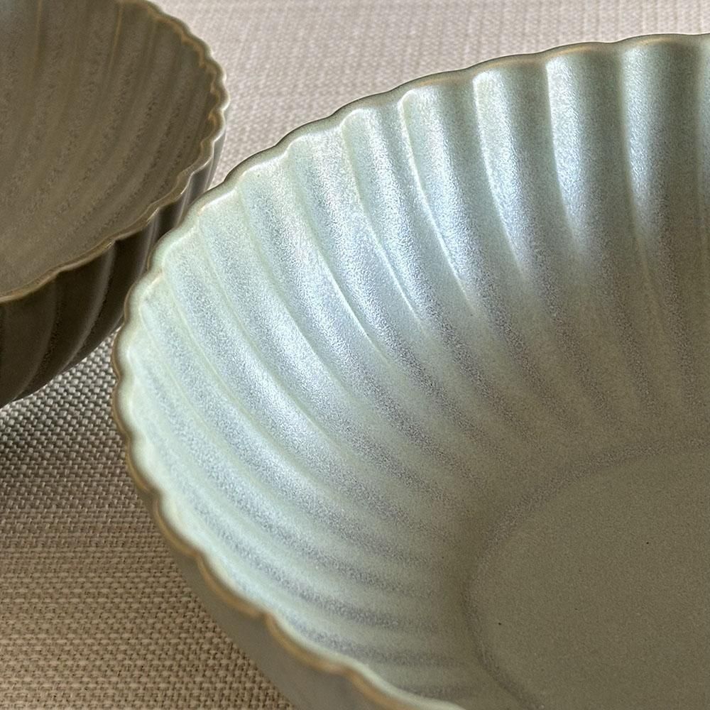 Smoky green の菊割鉢は、ニュアンスのあるくすみカラーが魅力。