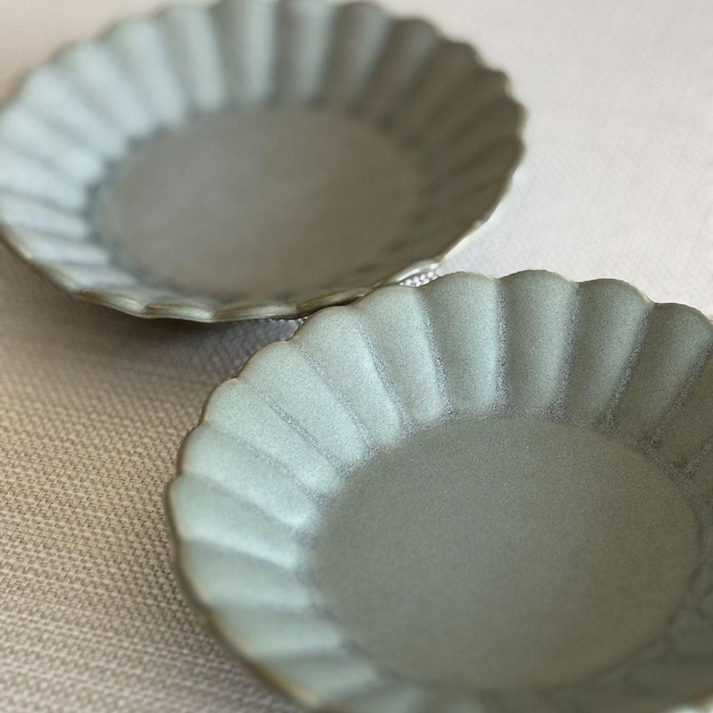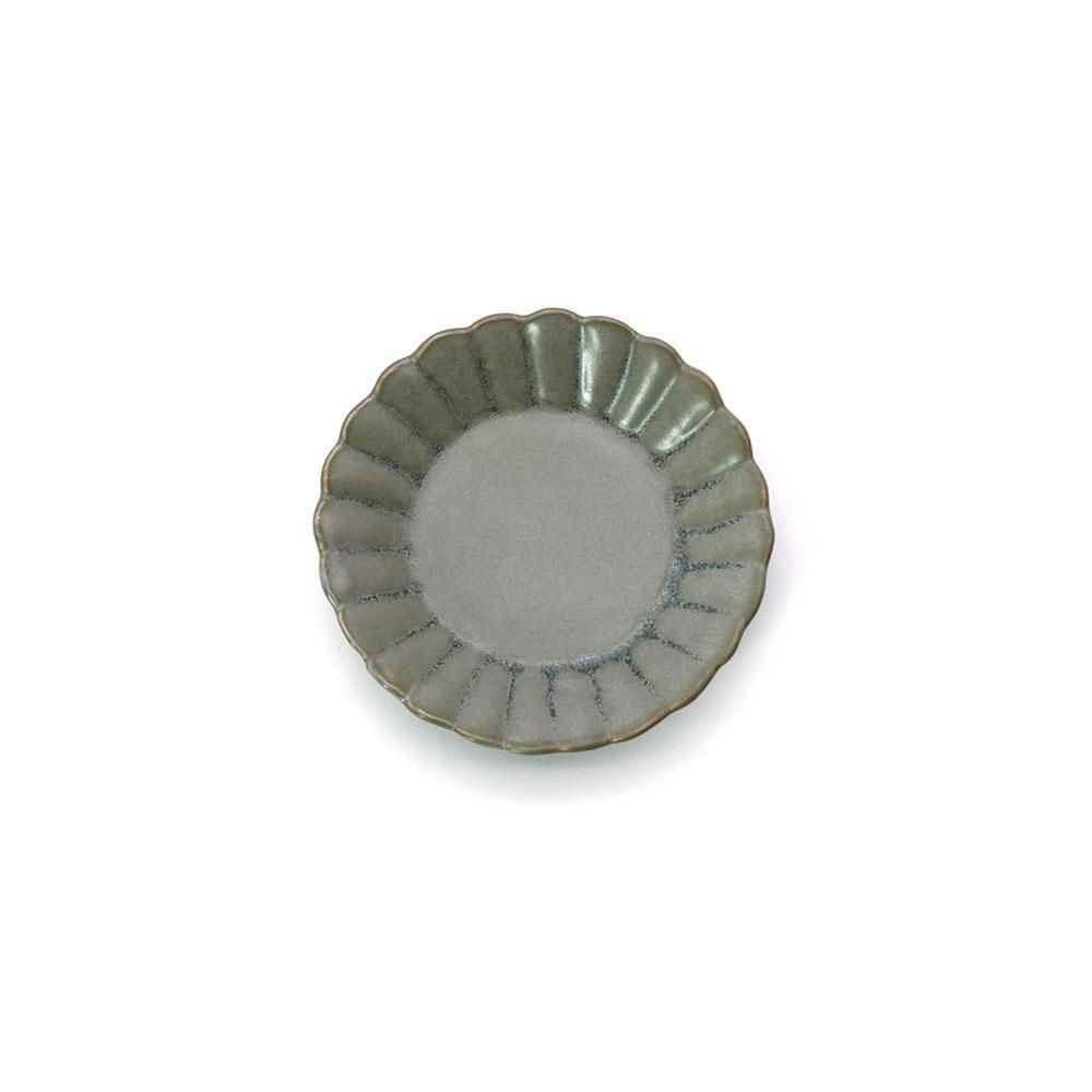 Smoky green の菊割小皿は、ニュアンスのあるくすみカラーが魅力。