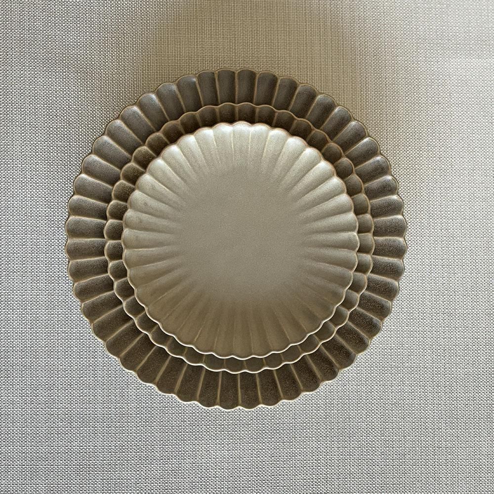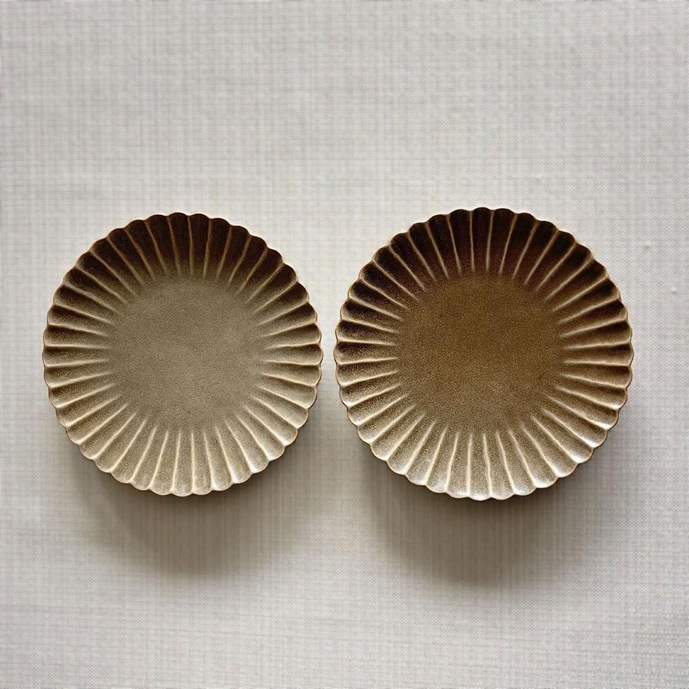 Smoky brown の菊割皿は、ニュアンスのあるくすみカラーが魅力。